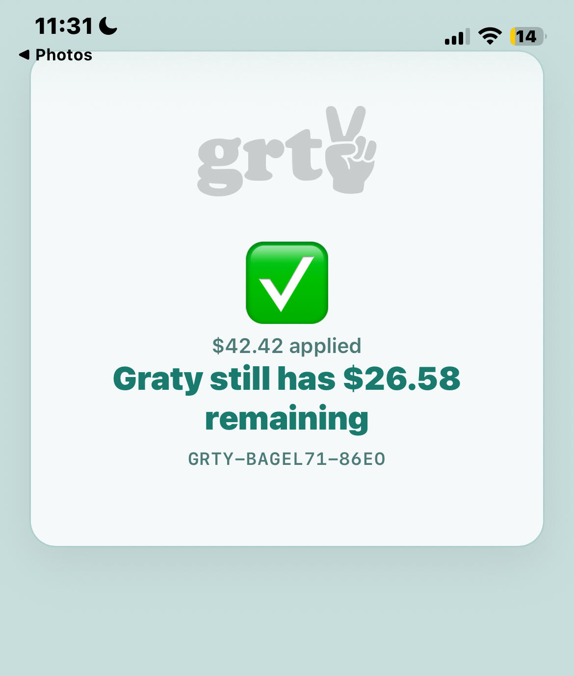 What happens nextOnce you sign up, we'll get you set up in GratyShare and create your unique Graty QR code. We'll reach out to deliver your Graty QR stickers for the store. Customers scan, choose an amount, and pass it forward to someone else. When a Graty is purchased, you receive the payment instantly, like any other sale.